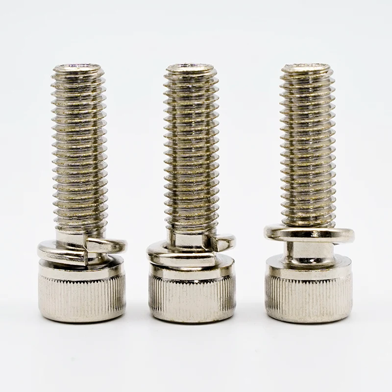 ในสายการประกอบแบบอัตโนมัติ การใช้สกรูที่ประกอบไว้ล่วงหน้าสามารถปรับปรุงประสิทธิภาพการผลิตได้อย่างมาก ประหยัดเวลาแรงงาน และลดอัตราข้อผิดพลาด สกรูหัวจมหกเหลี่ยมชุบนิกเกิลความแข็งแรงสูงพร้อมแหวนรองสปริงของเราผ่านการบำบัดด้วยการกำจัดไฮโดรเจน จึงช่วยขจัดปัญหาการเปราะของไฮโดรเจน Because they are pre-assembled and then electroplated, the screw, spring washers, and their contact points are all covered by the plating, forming a unified whole. การชุบนิเกิลให้ความทนทานต่อสนิมและการกัดกร่อนได้ดี โดยมีลักษณะสม่ำเสมอและสดใส เมื่อชิ้นงานทั้งสองที่เชื่อมต่อกันนั้นเป็นวัสดุแข็งและแบนซึ่งไม่ไวต่อความเสียหายที่พื้นผิว สกรูหัวจมหกเหลี่ยมชุบนิกเกิลพร้อมแหวนรองสปริงจะป้องกันการคลายตัวและเพิ่มความสวยงามได้อย่างมีประสิทธิภาพ ในสถานการณ์ที่ต้องใช้มาตรการป้องกันการคลายตัวขั้นพื้นฐานและจัดลำดับความสำคัญของรูปลักษณ์ โซลูชันนี้จะมอบโซลูชันแบบครบวงจร